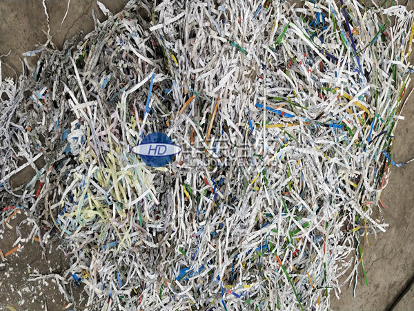 廢紙放入進(jìn)料皮帶后,自行前進(jìn)到預(yù)碎刀盤,進(jìn)行高間距上下雙排切割至20%進(jìn)度后,被送至二排中間距刀盤切割至15%進(jìn)度,送至第三排中低速轉(zhuǎn)動的M型短刀輥進(jìn)行篩網(wǎng)和刀輥的切割、切片破碎至達(dá)到篩網(wǎng)出料尺寸后完成出料,本機(jī)屬于中低速破碎方式,無噪音、無粉塵。